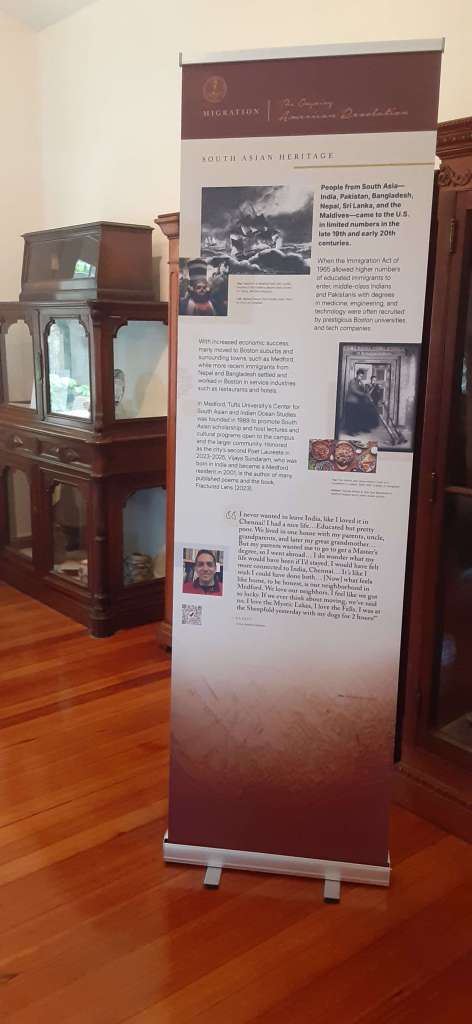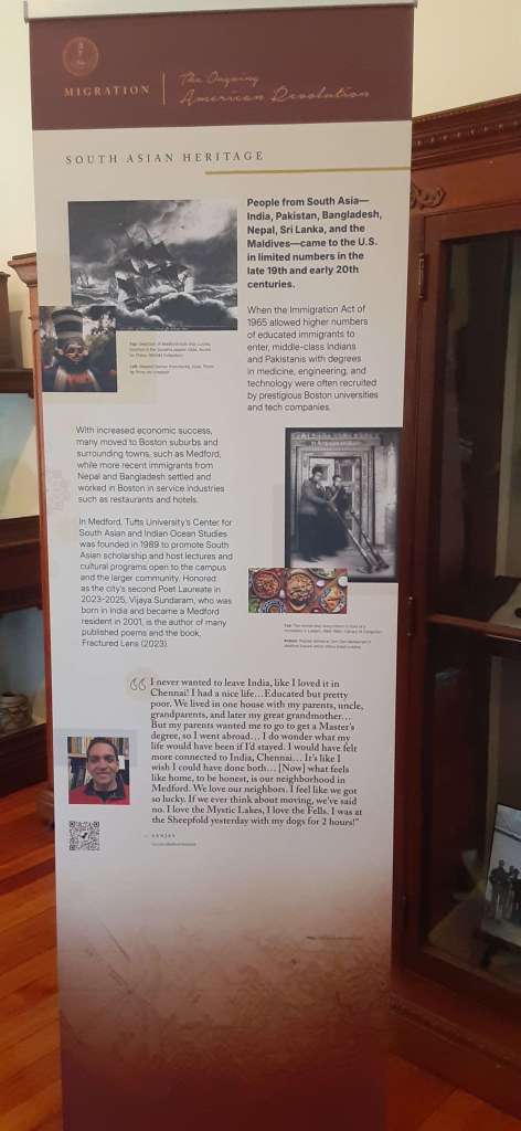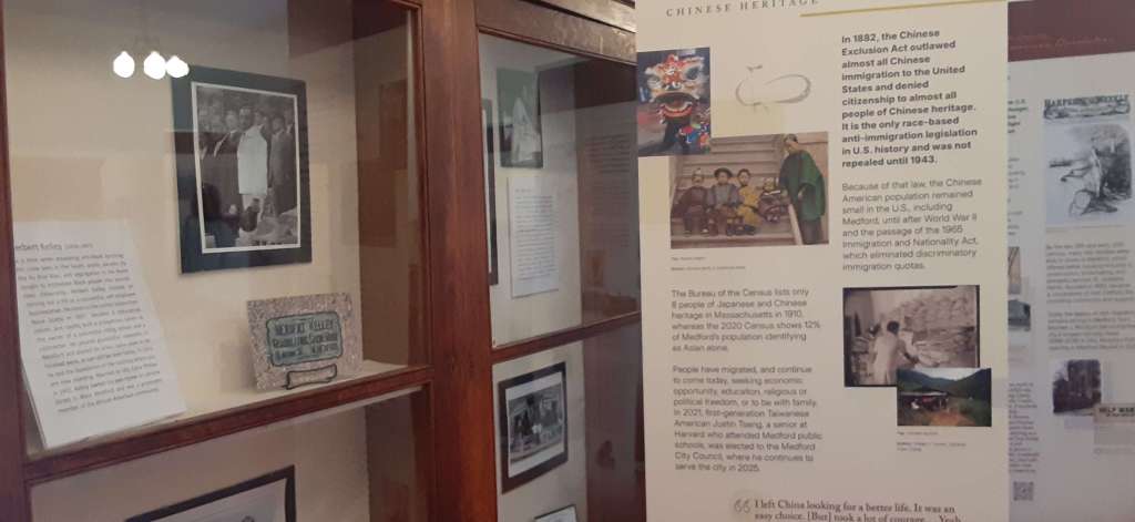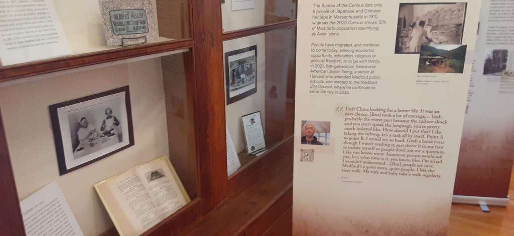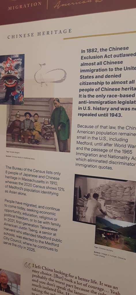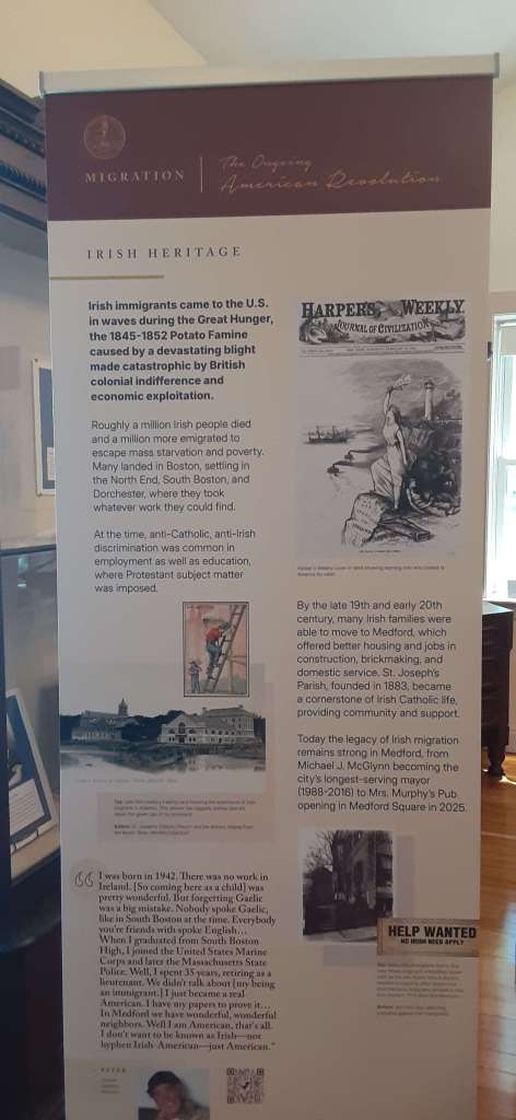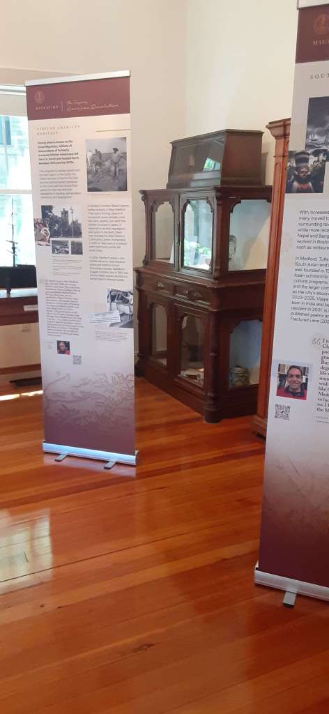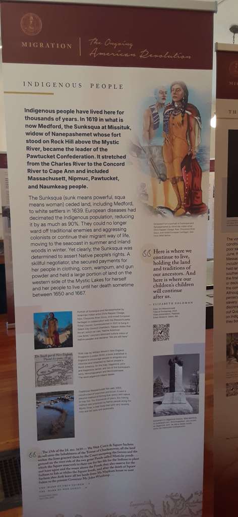 There are banners representing each ethnic group and their journey to the city of Medford, whether they arrived seeking a better life from various parts of the world of to the Native American Indians who had settled the region before settlers arrived from England, mostly everyone is accounted for. The exhibit is also interactive. At the bottom of each banner is a QR code that if you point your smart device, you will get an audio clip giving you more details on the particular group.
