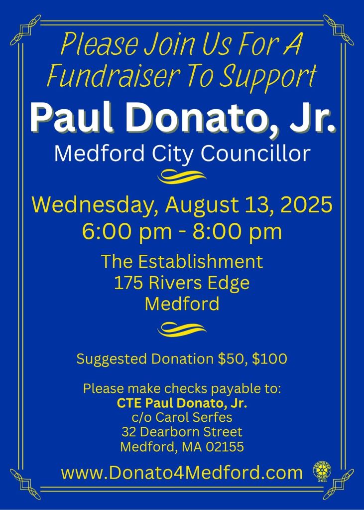 Everyone’s invited to Paul Donato Jr. fundraiser. The money raised will go towards his campaign for Medford City Council. Check out his website for more information around his platform and of course if you haven’t seen him on our show, the interview is below!