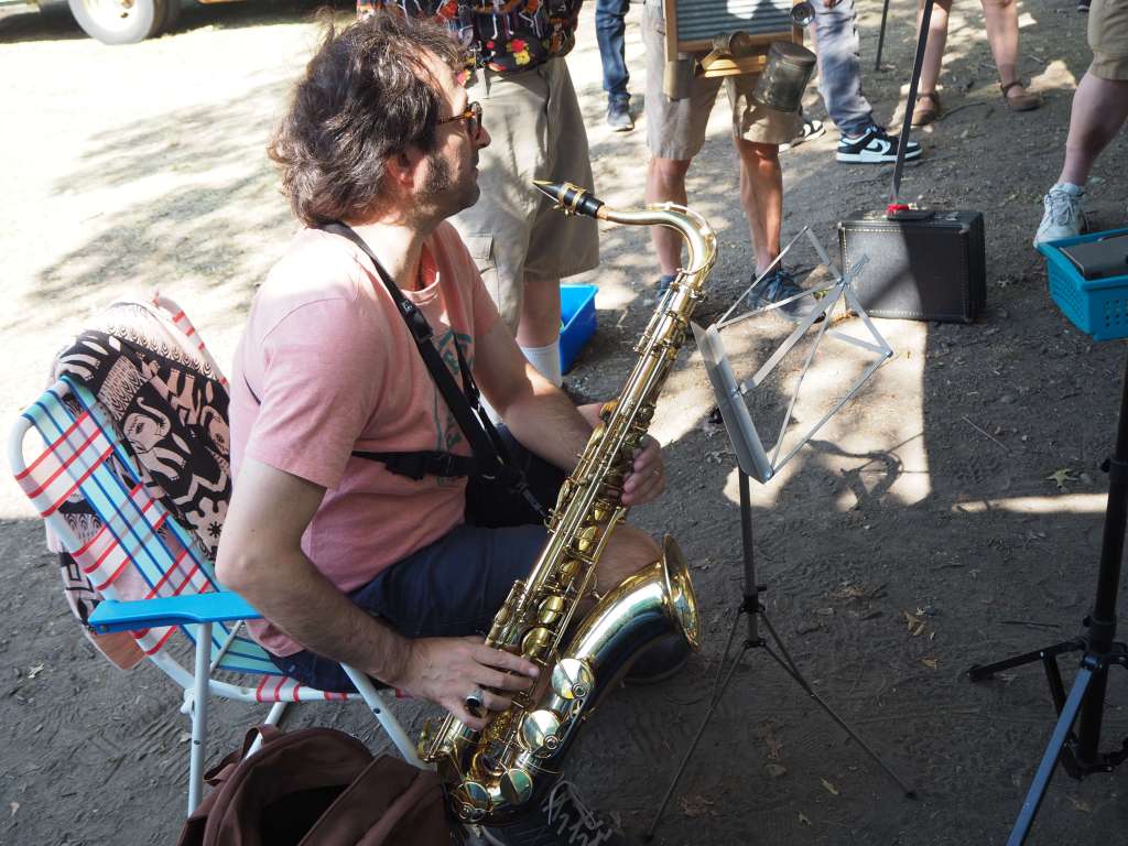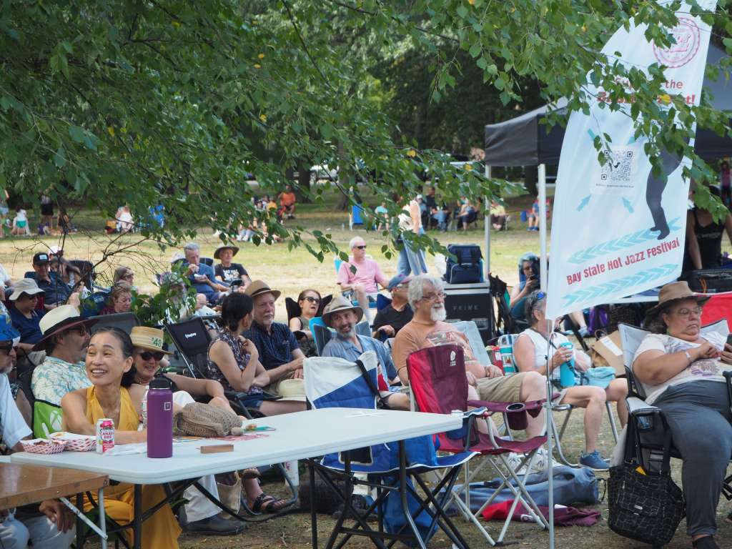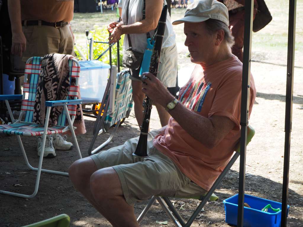 This month has been an embarrassment of riches! Last week we had the Medford Jazz Festival, this week its the Bay State Hot Jazz Festival. There are very much different jazz styles between the two events. This weekend event was more in the style early jazz. Think Django Reinhardt, Sidney Bechet, even a little ragtime. It can’t be stressed at the level of musicianship of the bands who played yesterday and who will be playing today. This event was very popular, there were roughly 250+ all under the shades provided by the trees at the Condon Shell.