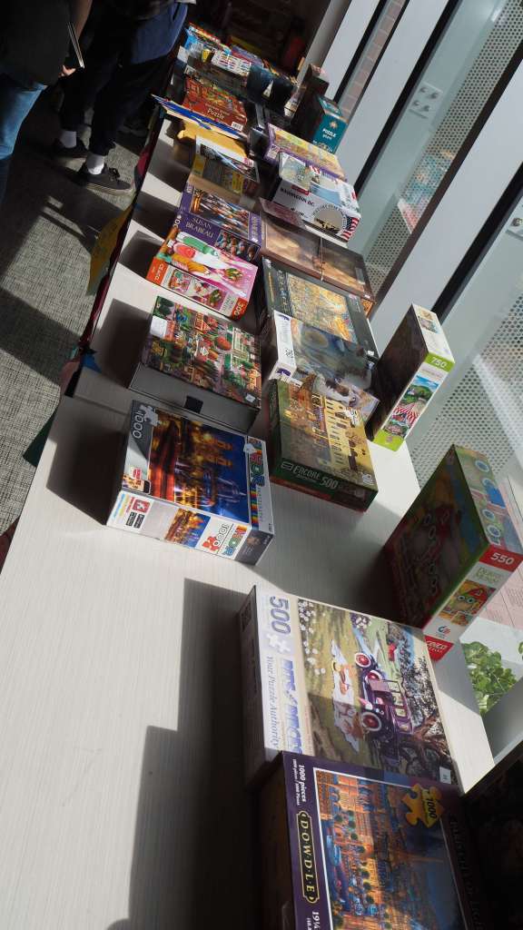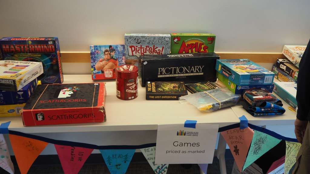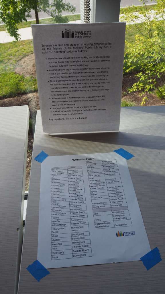 This was the largest sale of the season, the next one in December will be smaller and a one day event. Despite going up against 4 other major book sales, the Medford sale stands above the rest. One fortunate person found a first edition copy of a Harry Potter book, which was sold to her for $1.50. Also among the finds were the almost complete collection of Stephen King books, cds from the Beatles (Rubber Soul and Revolver which some say are the best albums released by the Beatles). Books on cds, puzzles, games, dvds and baked goods! The money raised for this event all goes back in to the library to help pay for subscriptions and databases for the residents of Medford and the Public Library. This is especially important given these fiscally tight times. If you missed this round, not to worry this event happens three times a year. For now, you’ll have to live vicariously through these photos.