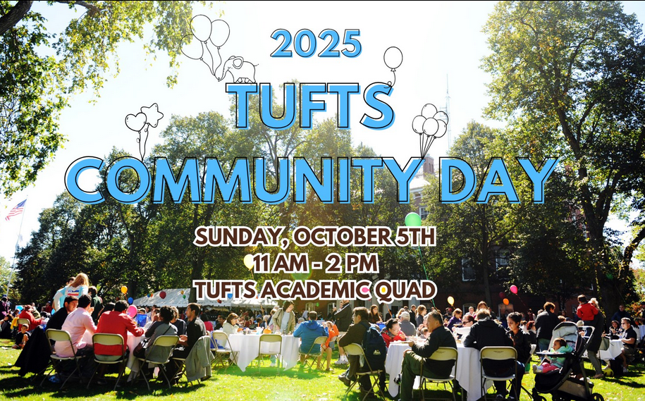 All are welcome to attend Tufts Community Day on Sunday, October 5 from 11AM-2PM on the Academic Quad of Tufts’ Medford/Somerville campus! Please join us for this family-friendly day of live performances, kids STEM activities and crafts, research presented by Tufts faculty and staff, touch a truck vehicles, community resource tables, a free barbeque lunch (while supplies last) & more!