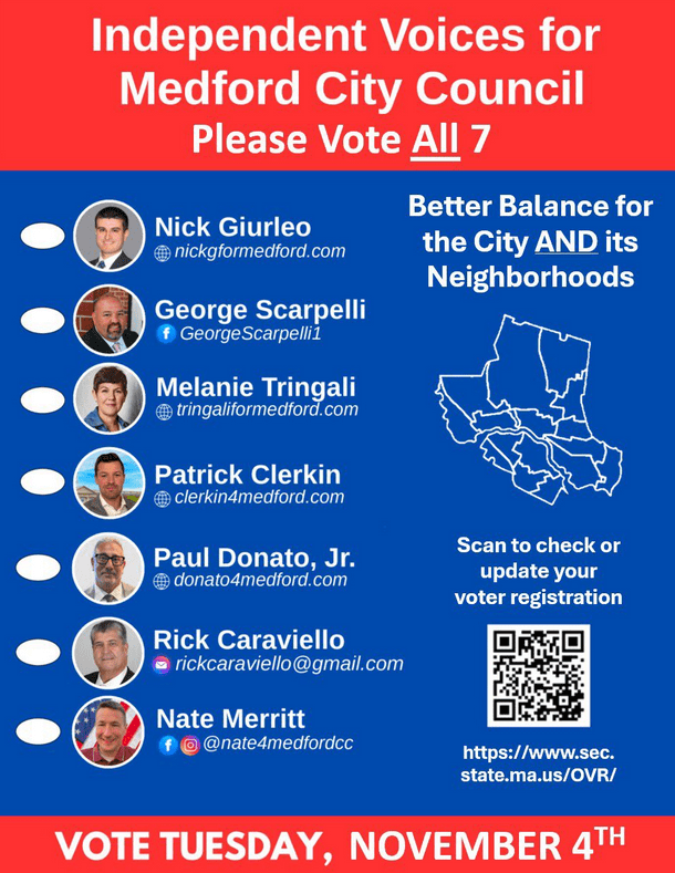 Early voting is now in its second day, and turnout has been strong. This bodes well for independent candidates like Nick, who offers solutions tailored to Medford’s specific challenges. While the Our Revolution group focuses on global issues, candidates like Nick are working hard to ensure that Medford residents receive practical, local solutions—whether it’s reinstating weekly city council meetings or leveraging his legal background to help the city navigate everyday challenges. Visit his facebook page for daily updates on citywide issues – https://www.facebook.com/profile.php?id=61575246882228 Of course you can also check out his campaign website – https://www.nickgformedford.com/ Below are the videos of our interviews with Nick.