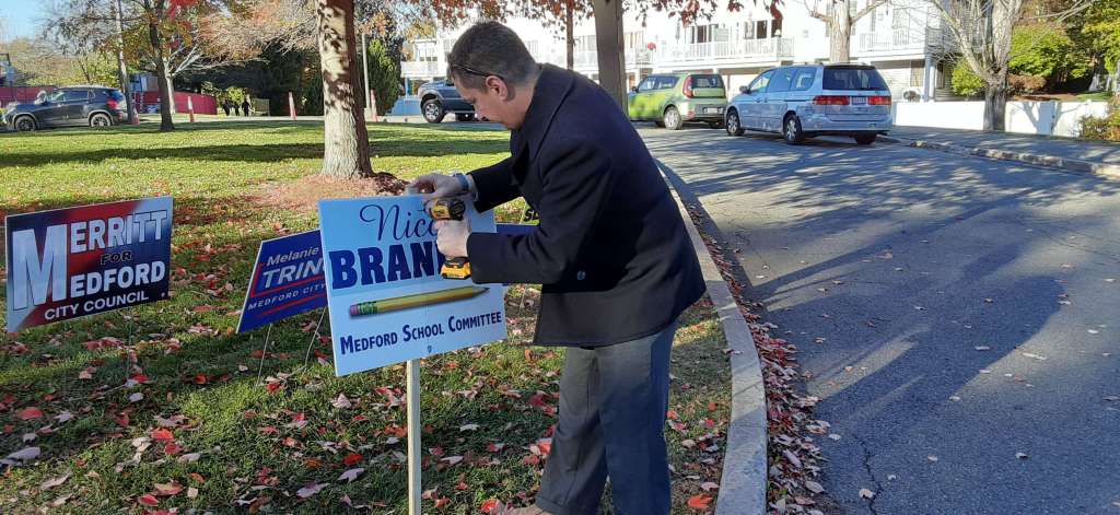 Nate Merritt, pictured above even took the time to repair Nicole Branley’s sign. Nate was the swingman, among the many who stopped by each polling place to make sure folks had what they needed. All the independent candidates rotated in shifts doing the same things. They checked in to the polling places and made sure things ran smoothly.