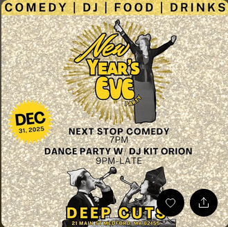 Yes the city, nay, your friends and neighbors are going to celebrate the New Year. If you haven’t jumped on a bus or plane to head down to NYC, or you choose not to go in town to Boston, then spend it here in Medford. Deep Cuts, fresh off their win at the Boston Music Awards for best club under 250. The hits continue. Bring in the New year by attending their event below: