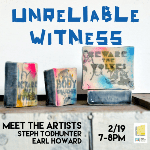 Step inside Unreliable Witness with exhibiting artist Stephanie Todhunter for a guided walkthrough of this immersive, interactive exhibition. Hear directly from the artist about the ideas, processes, and questions that shaped the work, and gain behind-the-scenes insight into how the installations invite viewers to become active participants. This is a unique opportunity to experience the exhibition through the artist’s lens and engage in conversation about perception, memory, and storytelling.