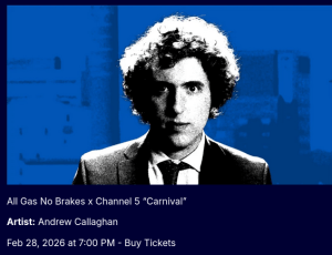 Andrew Callaghan is a 25-year-old American journalist acclaimed as “the only honest man left in news.” Known for his deadpan humor and unfiltered reporting on complex social and political issues via his YouTube channel, Channel 5 with Andrew Callaghan (billed as the “digital journalism experience”), Callaghan explores the depths of the most controversial issues in spectacular fashion.